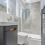 Dans cet appartement York - Balcony - Central - Sleeps 6, une toilette séparée et une douche ont été fournis pour améliorer votre confort. Un sèche-cheveux et des draps de bain sont accessibles.